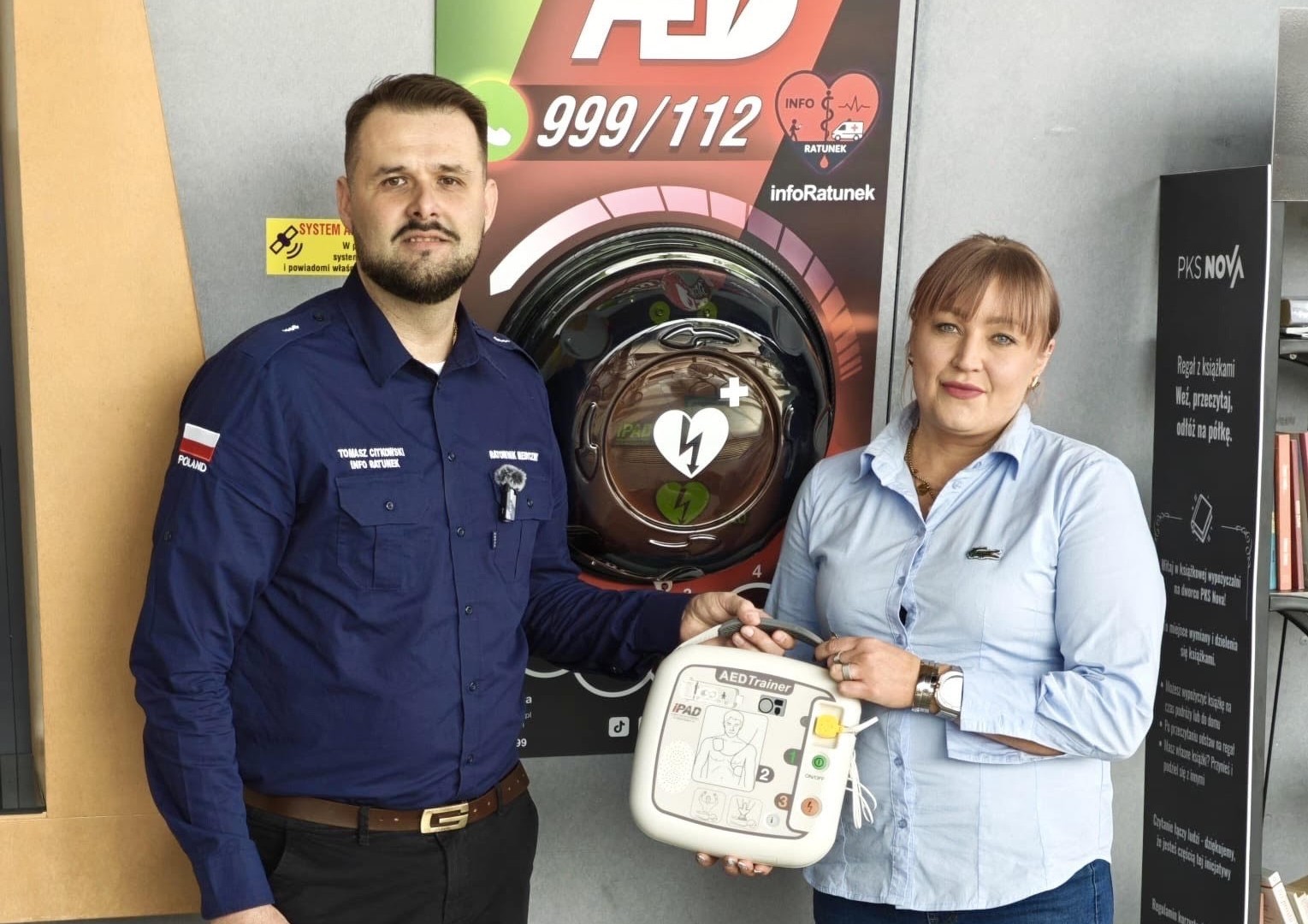 Defibrylator AED dostępny na dworcu PKS Nova w Białymstoku